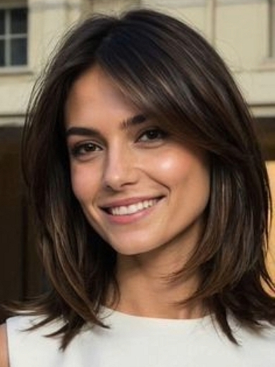 Natural Look Layered Shoulder Length Human Hair Lace Front Wig for Women – Soft Brown Highlighted Style